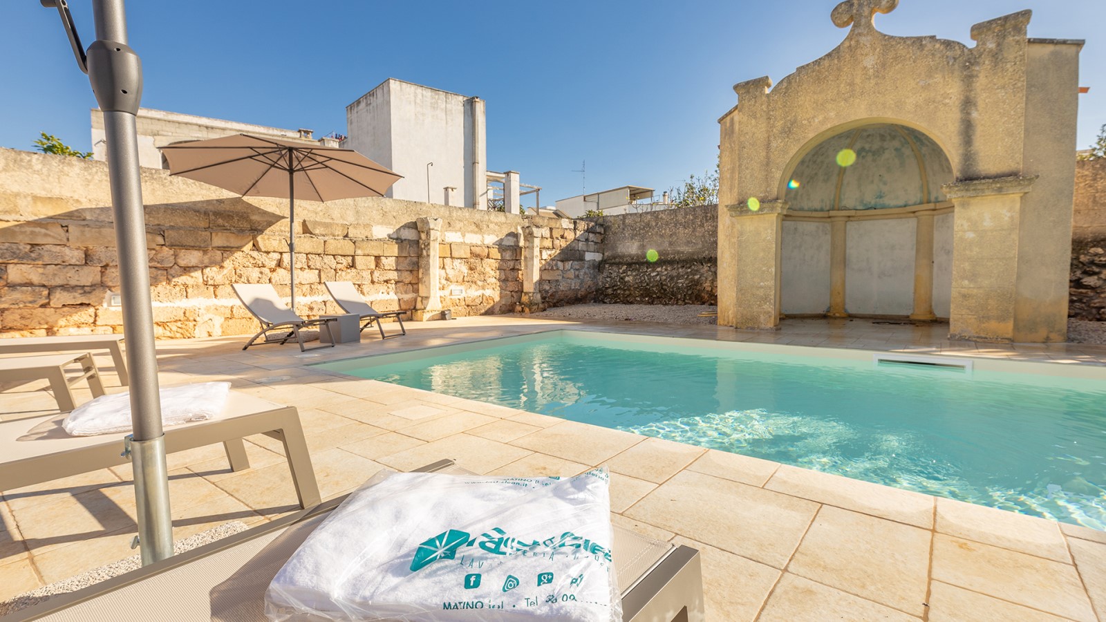 La biancheria da letto e da bagno con telo piscina e accappatoio sono messi a disposizione degli ospiti all’arrivo.