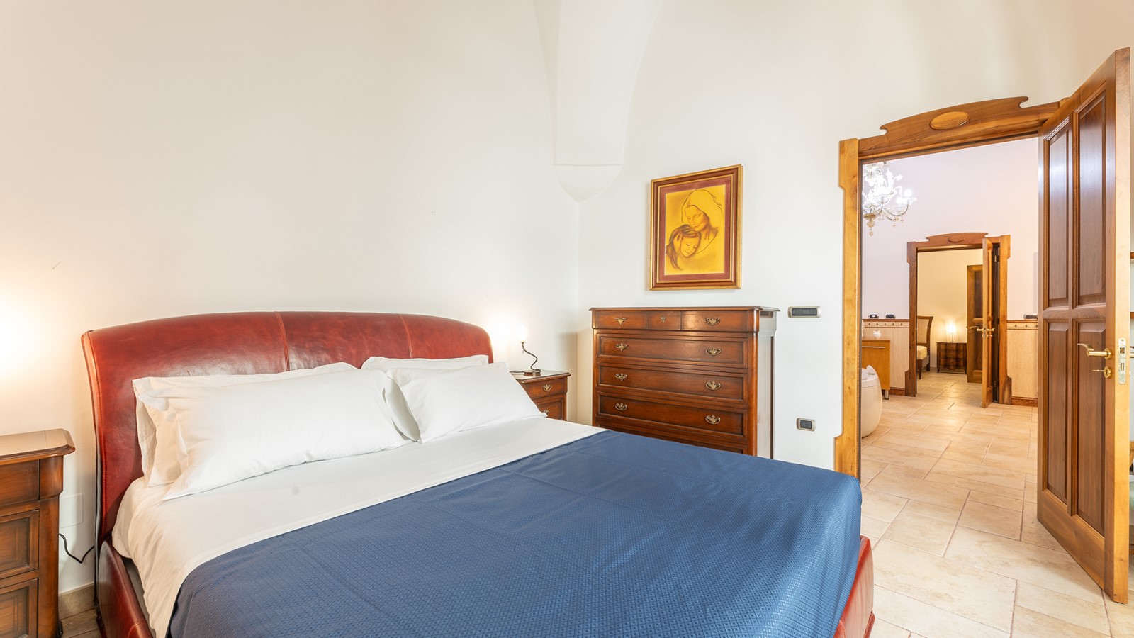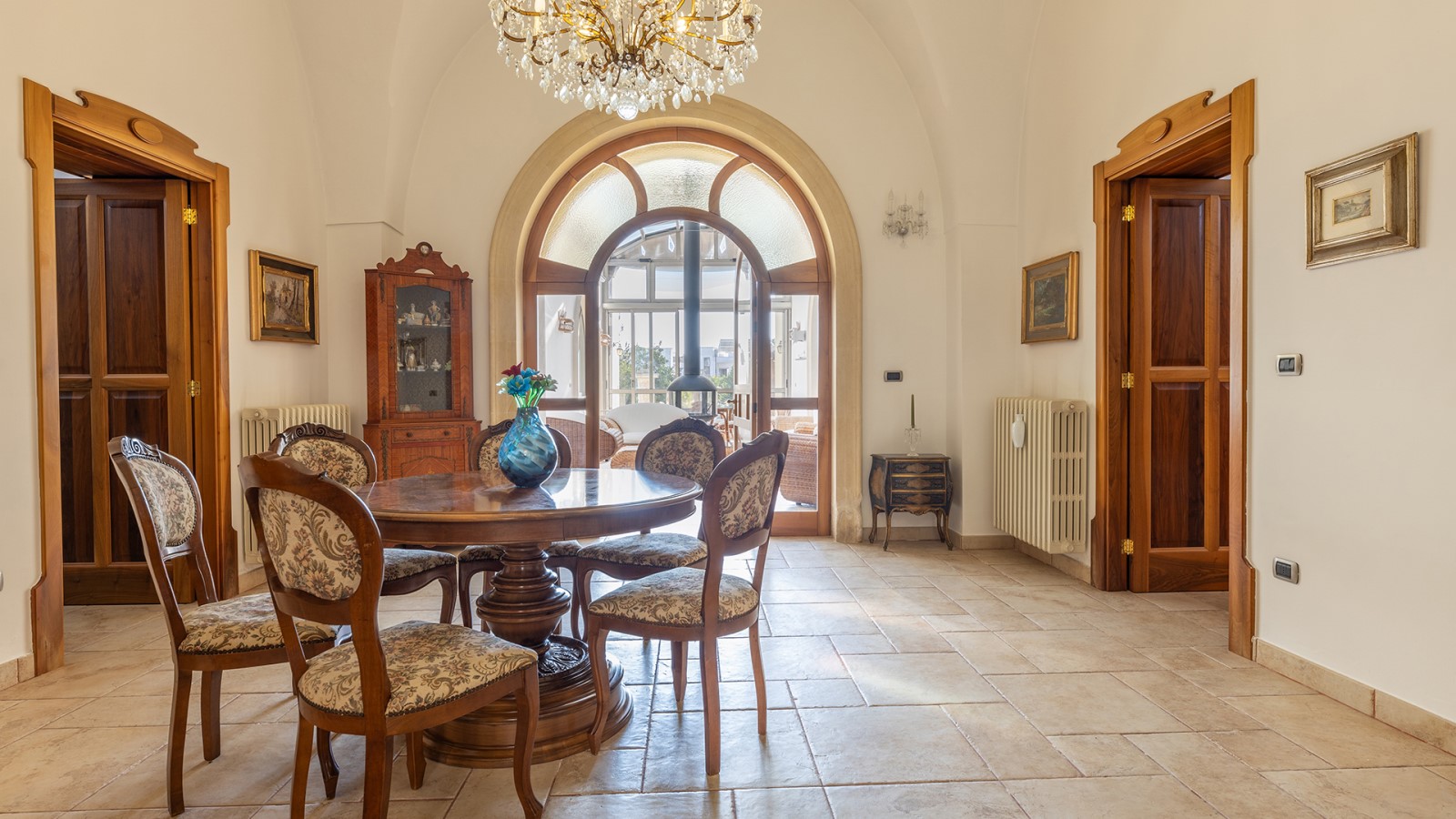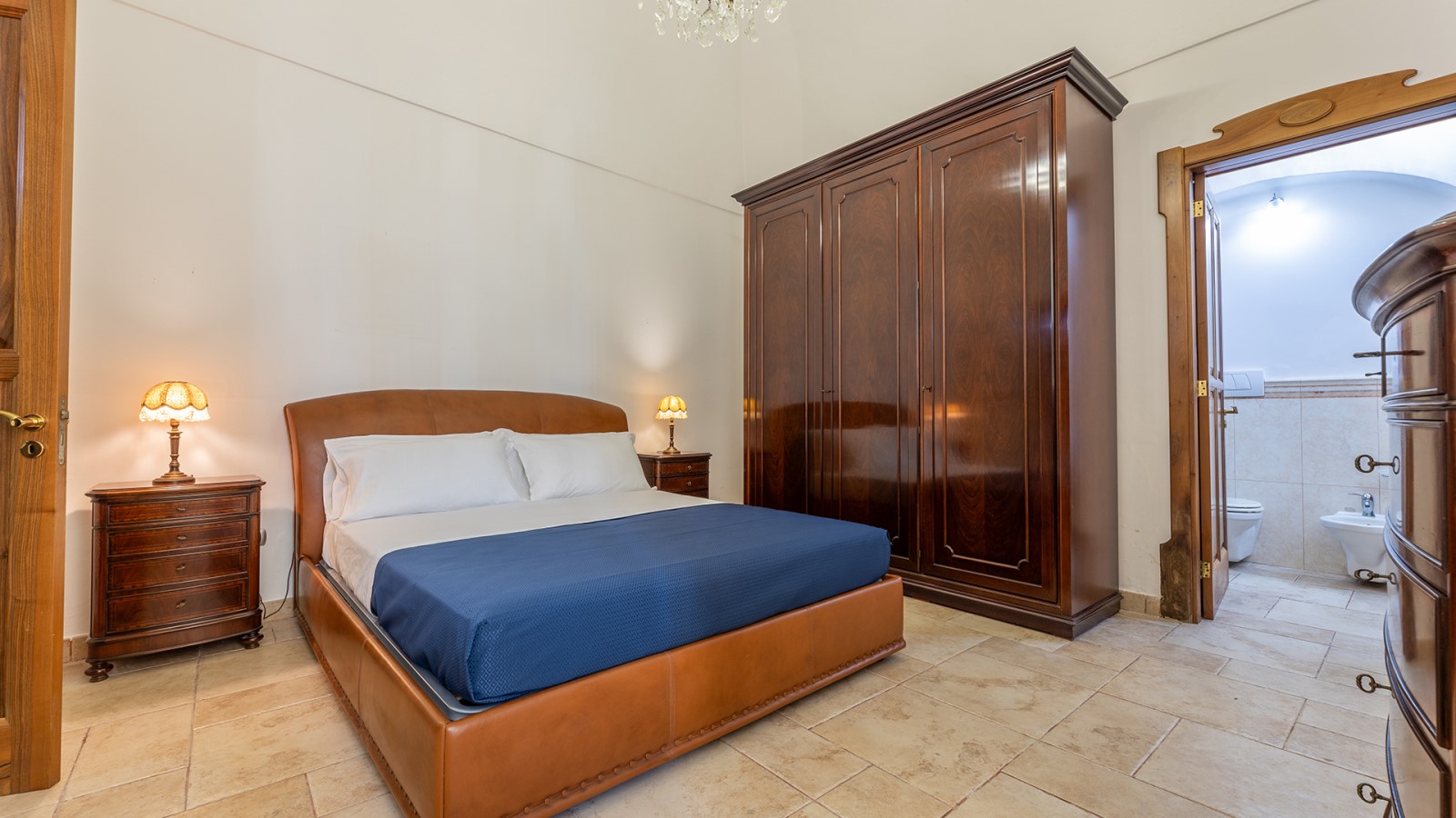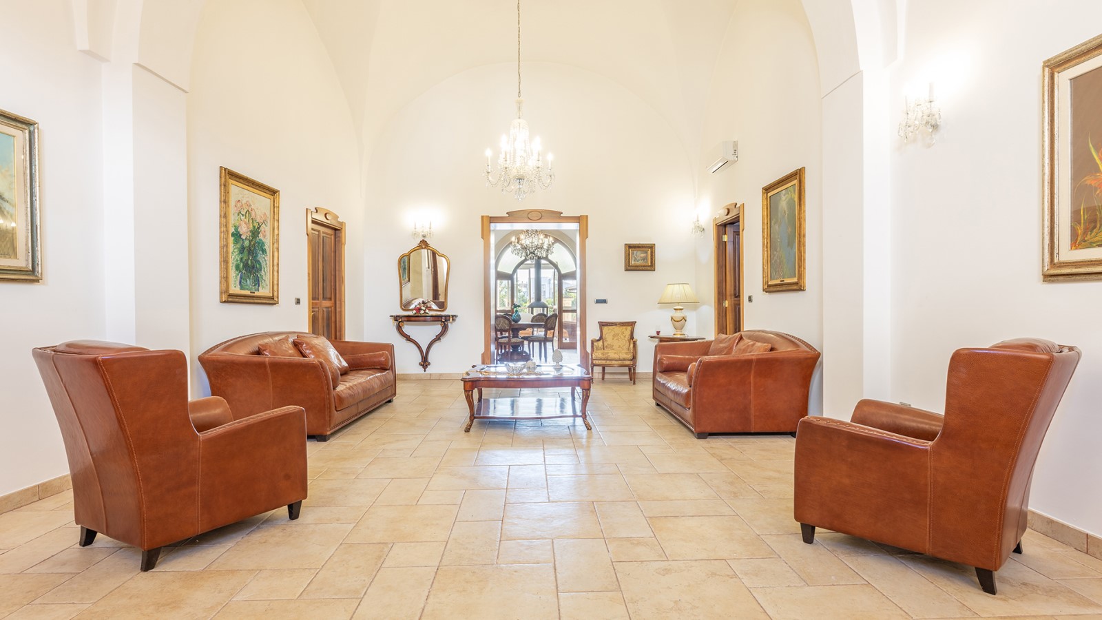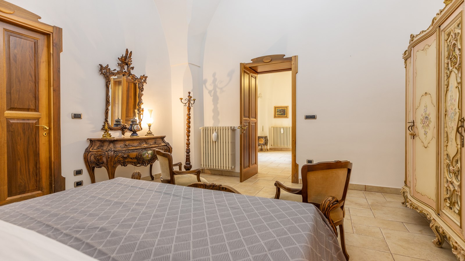 Dimora di charme con 4 camere matrimoniali, 3 bagni completi (2 ensuite), 1 bagno di servizio, ampio patio in vetro e rame, cucina professionale, zona relax con vasca idromassaggio e bagno turco. Arredi artigianali e mobili d’epoca convivono con elementi moderni e funzionali.