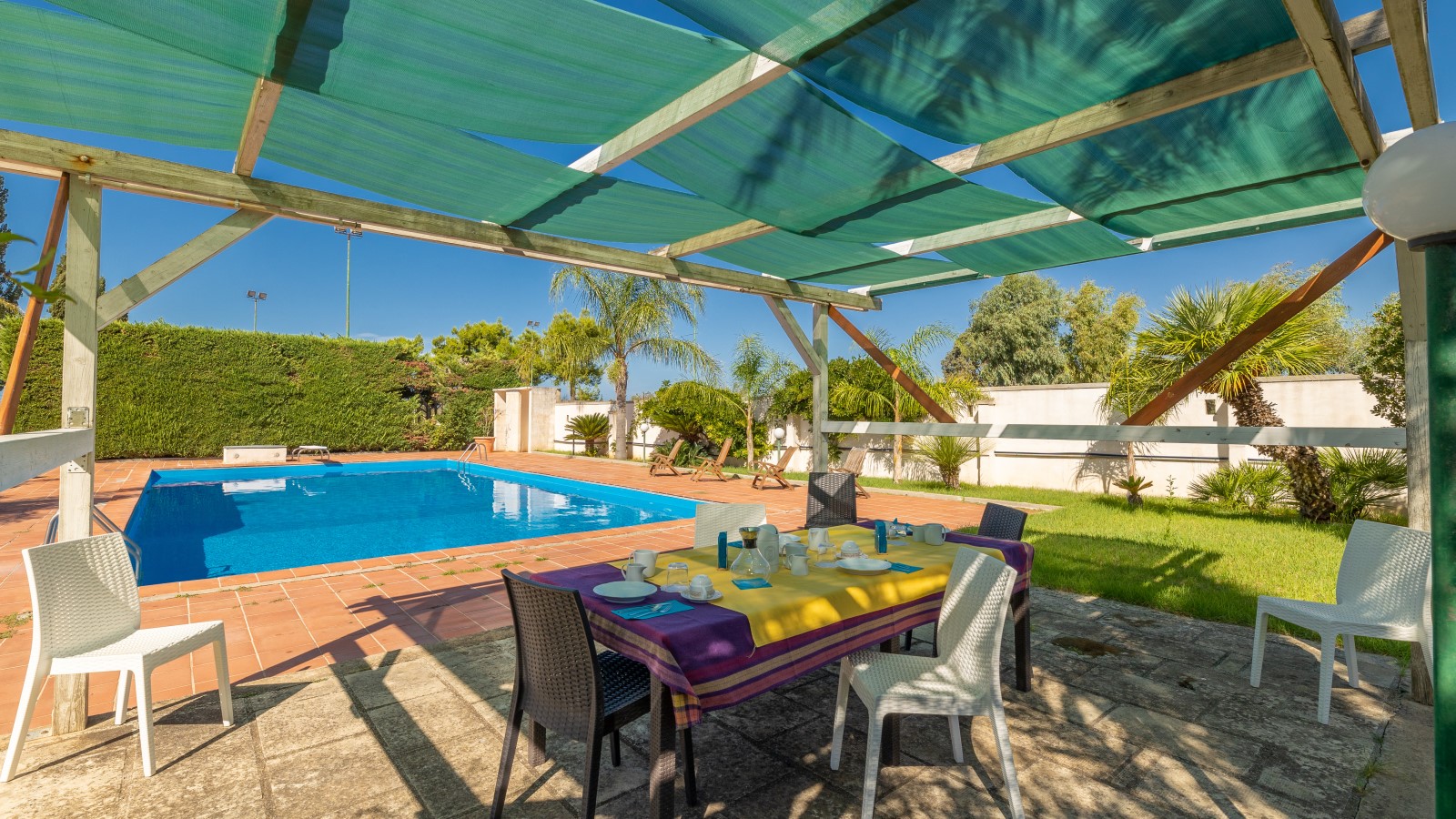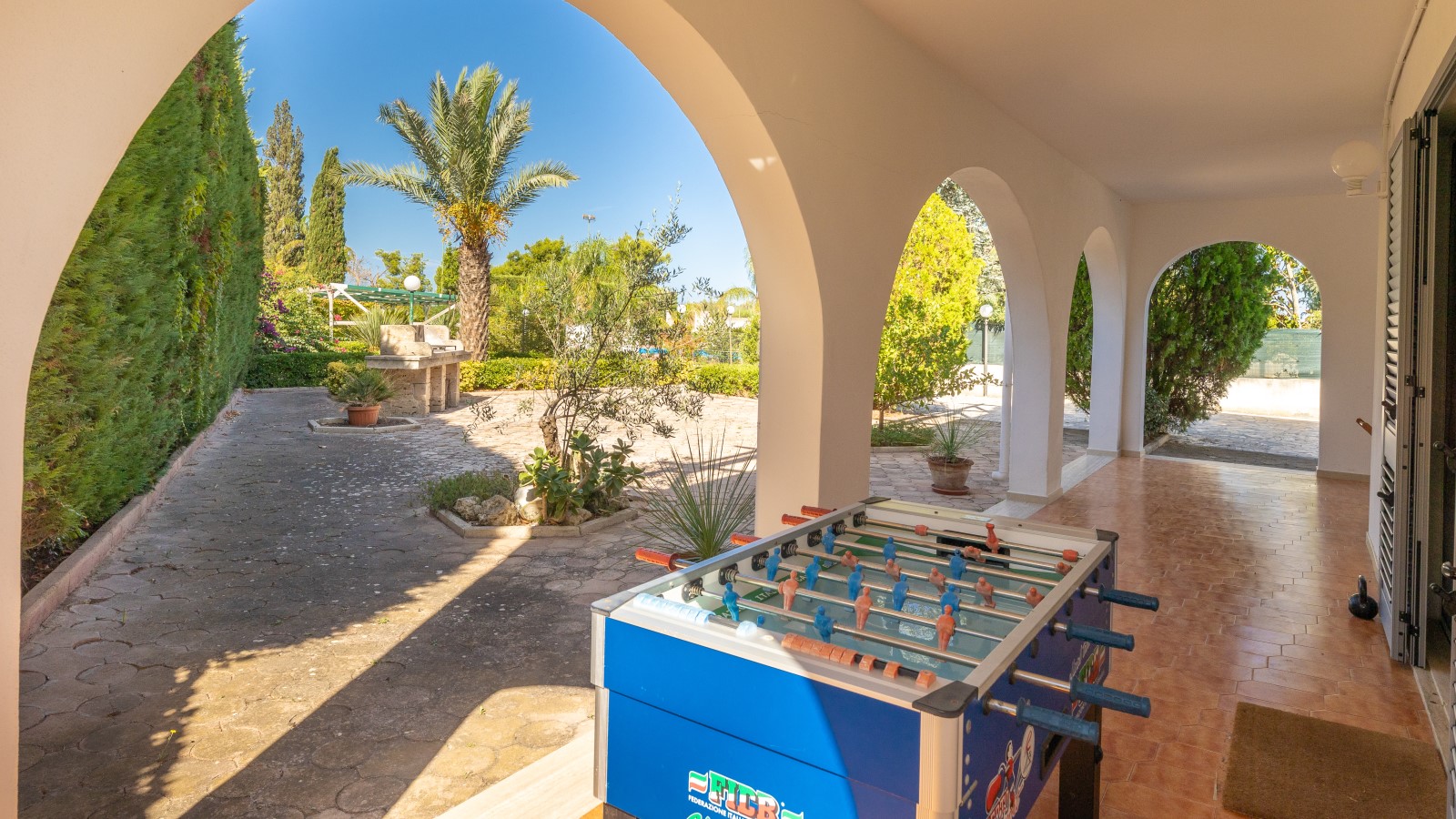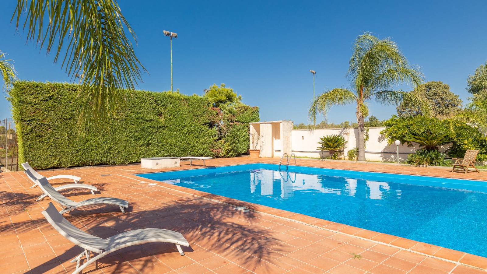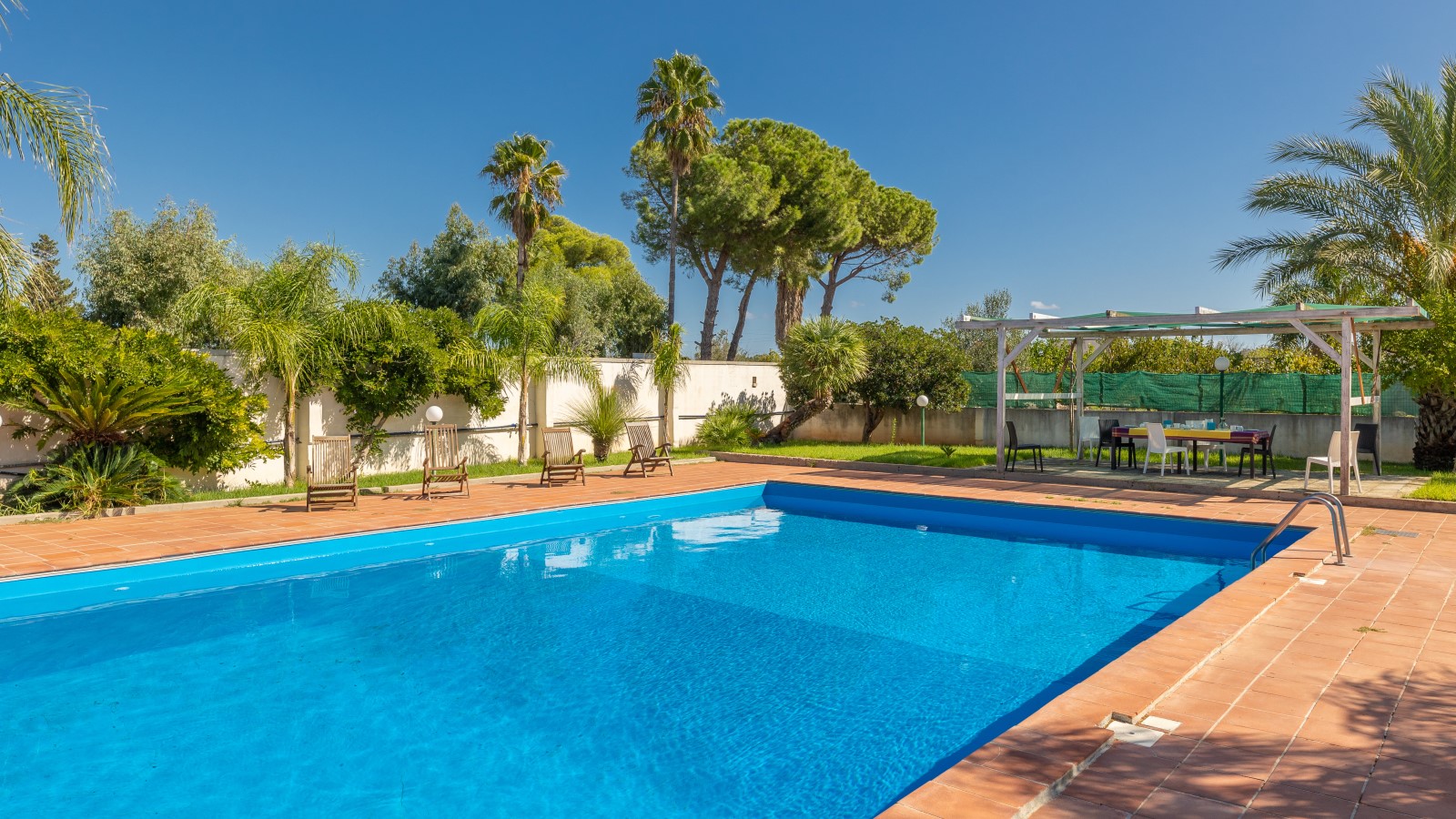 Questa villa è un'oasi di relax e tranquillità, perfetta per coloro che cercano una vacanza al mare in completa serenità. Situata nell'entroterra di Gallipoli, a soli 4,5 km dal mare, offre una splendida piscina (16x8) circondata da ampie verande attrezzate con mobili da giardino, docce esterne, gazebo e un campo da tennis regolamentare.