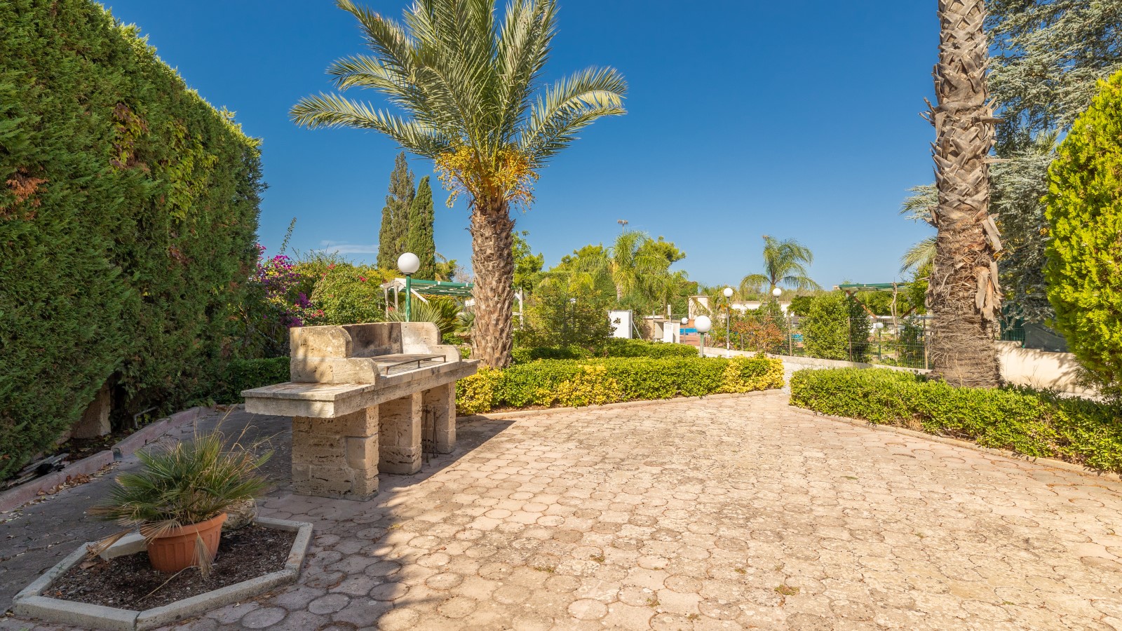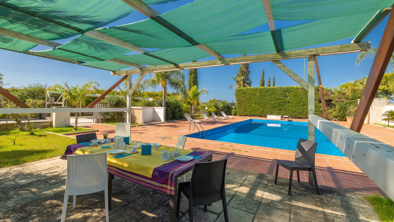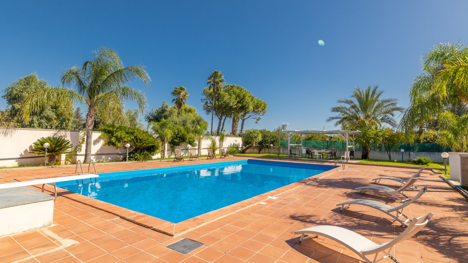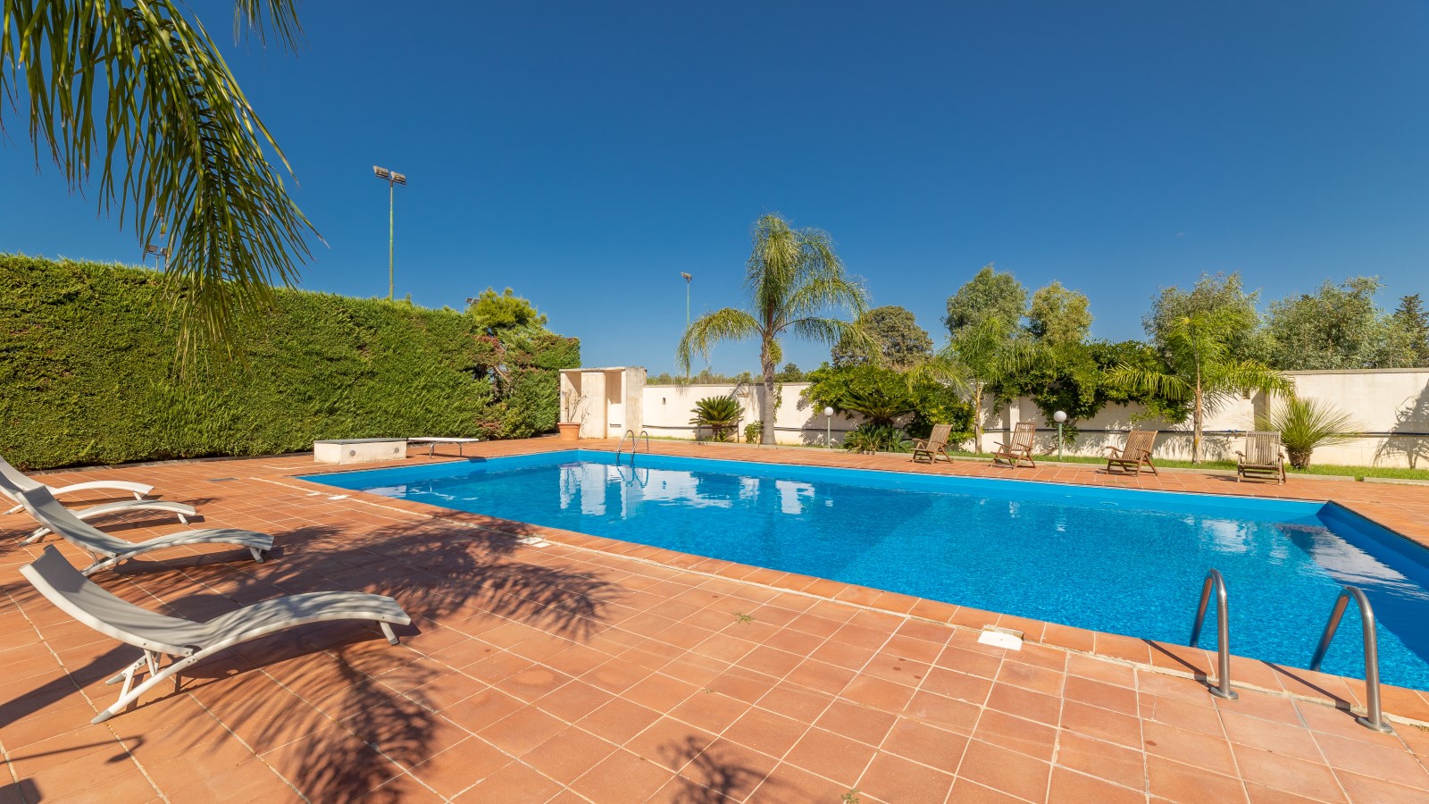 Questa villa è un'oasi di relax e tranquillità, perfetta per coloro che cercano una vacanza al mare in completa serenità. Situata nell'entroterra di Gallipoli, a soli 4,5 km dal mare, offre una splendida piscina (16x8) circondata da ampie verande attrezzate con mobili da giardino, docce esterne, gazebo e un campo da tennis regolamentare.