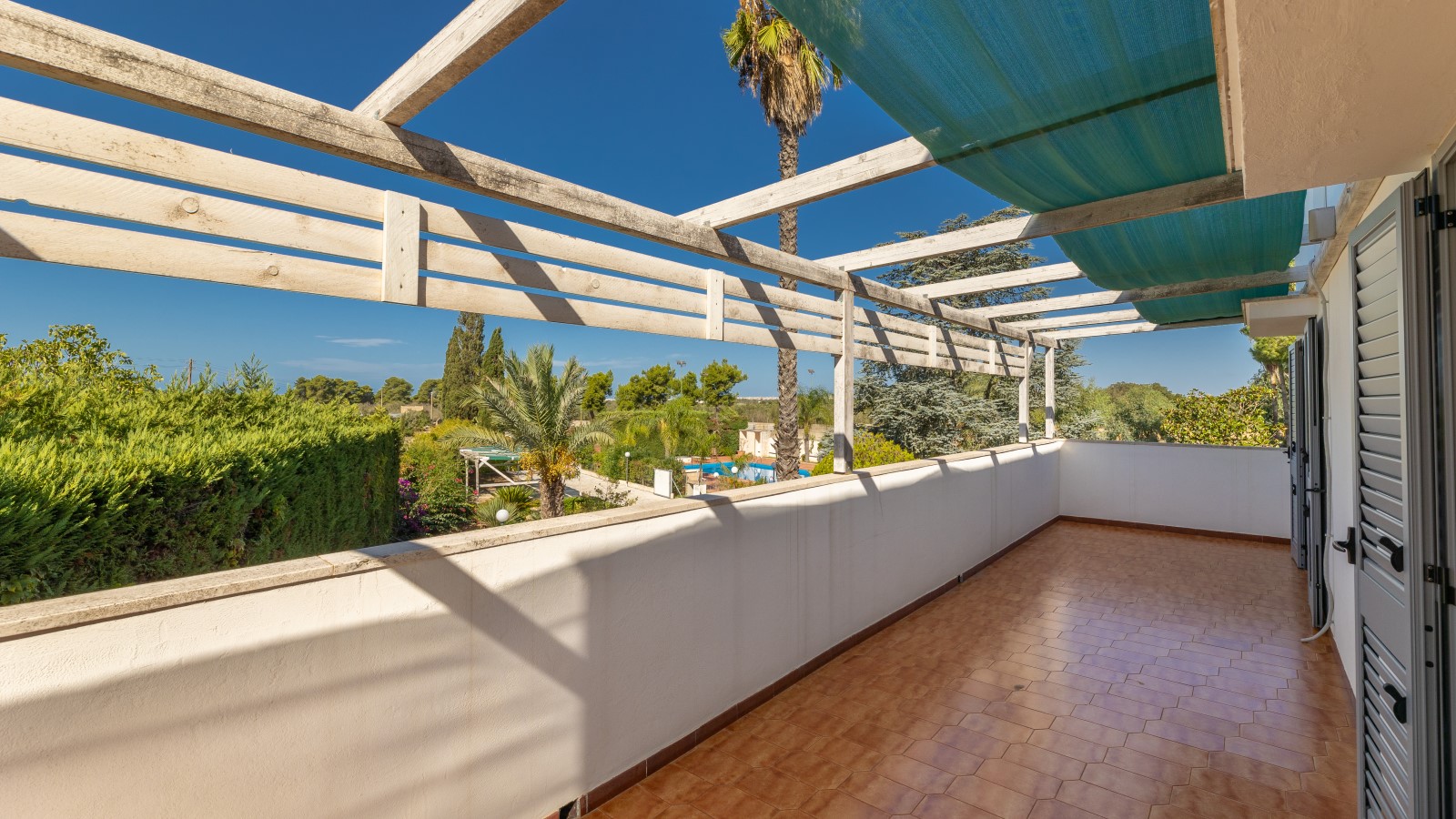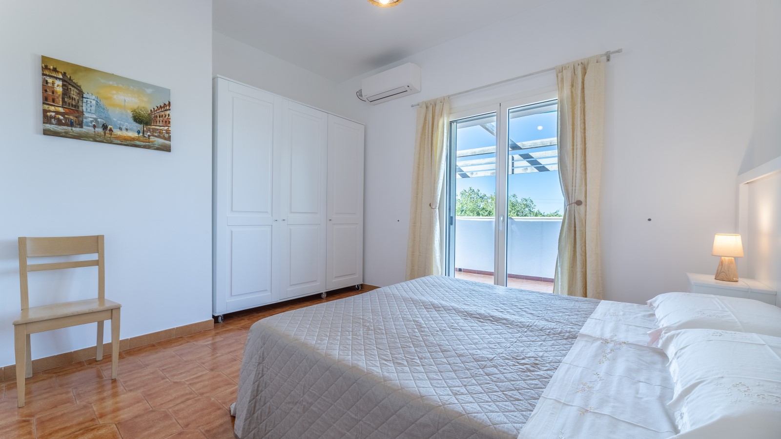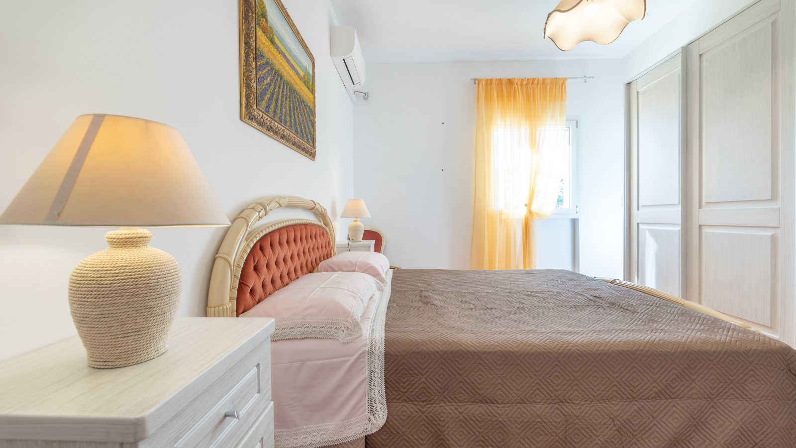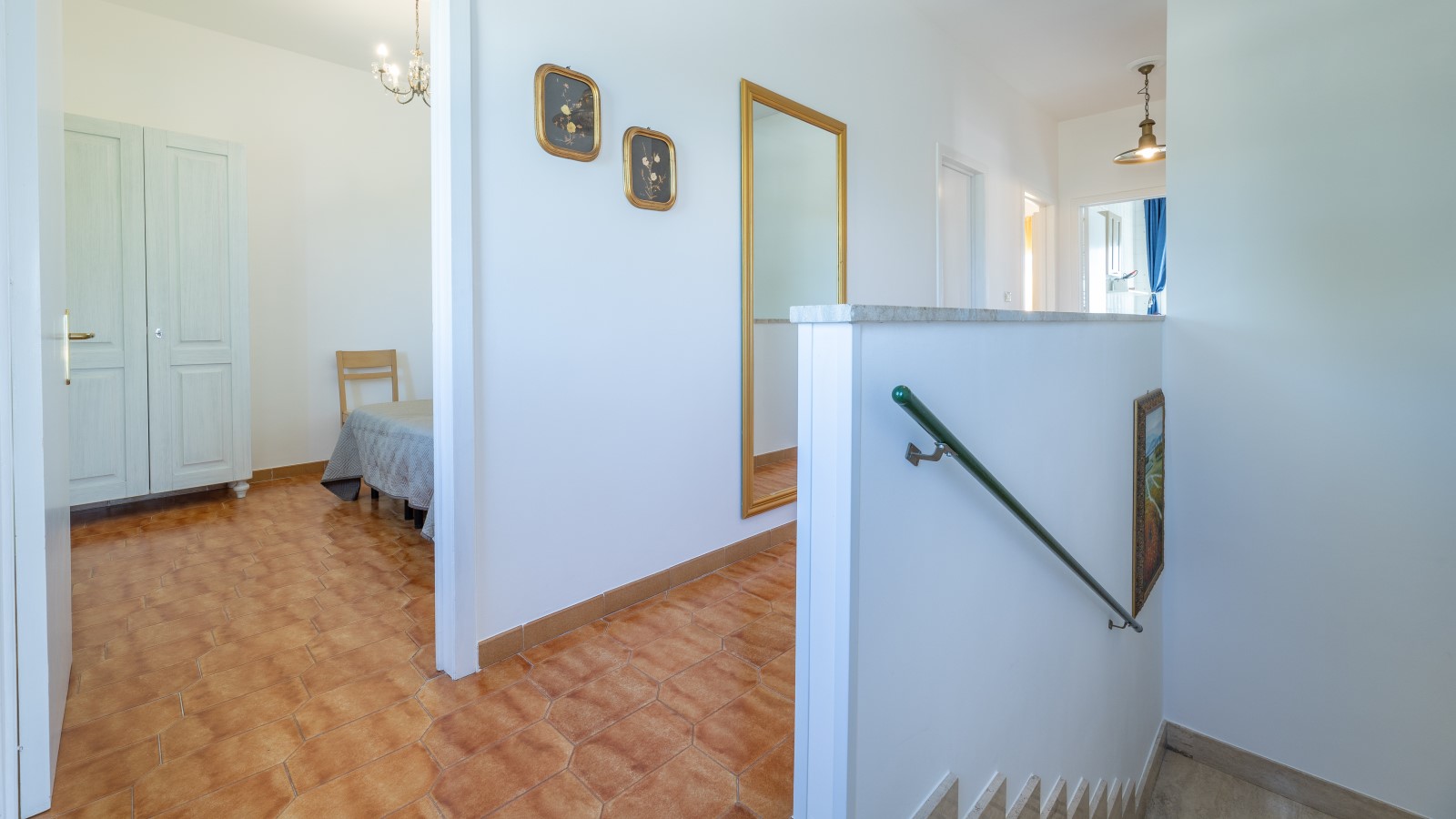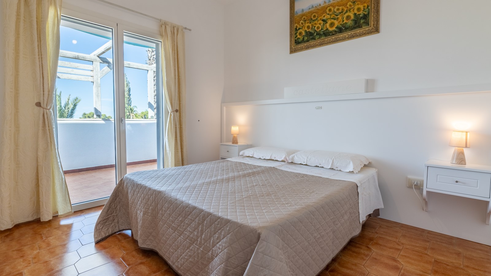 La villa si sviluppa su due livelli, con la zona notte al primo piano, dove sono presenti 4 camere da letto matrimoniali/doppie climatizzate e dotate di ampi balconi con vista sul giardino. Su richiesta, è possibile aggiungere un letto in due delle camere. Ci sono anche 2 bagni con box doccia e vasca.